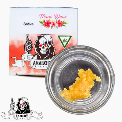 Anarchy Maui Waui Sugar is a 1-gram sativa-dominant cannabis concentrate known for its tropical flavor profile and energizing, creative effects.