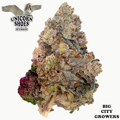 Unicorn Shoes is an indica-dominant hybrid strain by Supernova. It's a cross between Unicorn Sherbert and Cement Shoes, with a fruity and citrus taste accompanied by a hint of black pepper. This strain is rich in Caryophyllene and Limonene terpenes, providing a relaxing and euphoric effect.