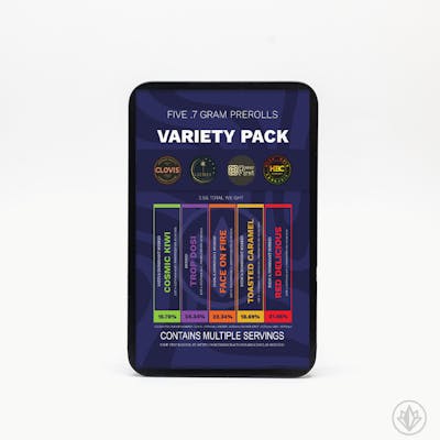 Includes: 1) Ridgetop Botanicals - Sour Tangie - Sativa Dom. - 23.80% THC 2) Ridgetop Botanicals - Melted Strawberries - Hybrid - 23.85% THC 3) GEEBEES - Face on Fire - Indica Dom. - 22.34% THC 4) High Brix Cannabis - Wedding Cake - Indica Dom. - 28.72% THC 5) High Brix Cannabis - Chocolope - Sativa - 21.34% THC