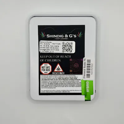 Diamond Socks is a cross of Ice Box Pie X Early Orange Description Diamond socks is a strain created by Free World Genetics, by blending the Sweetness of the ICE-BOX-PIE and their excellent Early Orange citrus diesel like. Effects/Potency It is a strong even 50/50 hybrid with a very powerful effect. Is a quick actine strain , It provides a sense of euphoric/happy feeling at the very start and ending with a true comfort feeling towards the end, very rich in content as well. Terpenes/Flavors Intense and pungent Orange Diesel notes, citrus fruit with sweet lavender end, flavors linger and settle well, very dense smoke and kief- rich cannabis bloom.