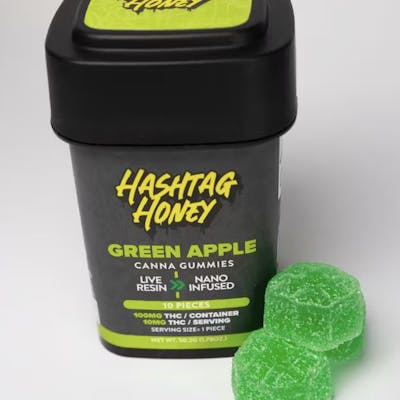 Hashtag Honey Green Apple Canna Live Resin Nano Infused Gummies 10pk.
