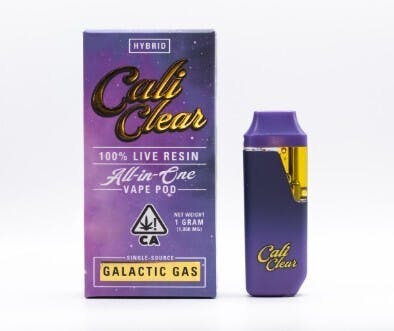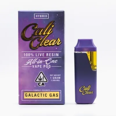 The Cali Clear Galactic Gas is a premium disposable vape designed for cannabis enthusiasts. It features 1 gram of high-quality live resin extract, delivering vibrant flavors and strong effects without the need for refilling or recharging. The vaporizer is known for its uplifting and energizing effects, making it popular among users seeking creativity and focus.