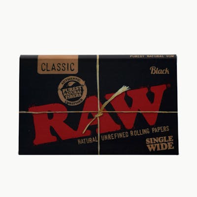 Extra thin Black Rolling Papers by Raw made from unbleached flax and hemp fibre, available in standard size 50 or 100 pack and king size slim 32 pack.