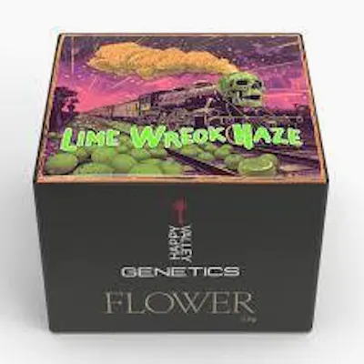 Happy Valley Lime Wreck Haze is a sativa-dominant strain known for its clear-headed, cerebral effects and intense citrus flavor profile. Strain CharacteristicsGenetics: An in-house cross of Ghost Train Haze and Super Lemon Haze.Potency: Typical TAC (Total Active Cannabinoids) ranges from approximately 28% to 32%, with THC levels often testing between 23% and 31% depending on the specific batch.Flavor & Aroma: Strong notes of lime, zesty lemon, and spice.Terpene Profile: Dominant terpenes include Terpinolene (fruity/citrus), Ocimene (minty), and Beta-Myrcene (herbal).Effects: Users generally report a happy, energetic, and cerebral high. TAC may vary batch to batch