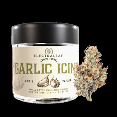 Garlic Icing – A Savory-Sweet Knockout When sweet meets savory and relaxation meets euphoria, you get Garlic Icing—a perfectly balanced hybrid (50% indica / 50% sativa) born from the flavorful fusion of GMO x Papaya. This strain is an experience in taste and tranquility, delivering bold flavors, slow-building effects, and a sedative finish that’ll have you melting into your couch like warm icing on a fresh pastry. Flavor & Aroma – A Culinary Adventure Don’t let the name fool you—this strain is not your typical sweet treat. Garlic Icing hits the senses with a unique, mouthwatering blend of herbal sage, nutty cream, and garlicky funk, rounded out by spicy diesel and a tangy citrus kick. It’s like dipping a fresh-baked pastry into a bold, umami-packed sauce—unexpected, but oh-so satisfying. The High – A Slow Burn to Bliss This high is a creeper, starting with a gentle but undeniable rush of euphoria and creative energy before transitioning into deep relaxation and sedation. With THC levels ranging from 20-30%, Garlic Icing is perfect for winding down the day and relieving stress. It’s a go-to for chronic pain, stress, anxiety, fatigue, mood swings, and insomnia. Whether you need to mellow out, boost your mood, or sink into deep relaxation, this strain has all the right ingredients. Appearance – A Frosty Masterpiece Garlic Icing’s buds are fluffy, spade-shaped, and covered in icy trichomes, featuring emerald-green hues, deep purple leaves, and neon-orange hairs—a gorgeous strain that looks as rich as it smokes.