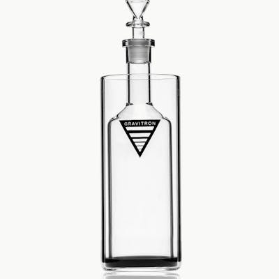 The world’s first all-glass gravity bong got a facelift. This new and improved version 2.0 Gravitron® boasts a fivefold increase in glass thickness and upgraded platinum cured silicone grommet for a tighter seal. The 19 mm female ground joint now fits any 19 mm male bowl and the flange at the top of the neck makes lifting the bottle a breeze. The Gravitron creates big, efficient hits through gravity and pressure. Start by filling the base halfway with water. Then pack the bowl with dry herb and insert it into the joint at the neck of the bottle. Light the bowl and lift the bottle at the same time. Once the bottle is full of smoke, remove the bowl and place your mouth over the neck, inhaling as you lower the bottle. The Gravitron will give you a dense, pressurized hit with no loss of smoke in the process. Although it’s the ultimate party pipe, the Gravitron is still considered one of the most efficient smoking devices on the market today.