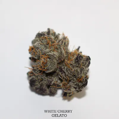 White Cherry Gelato White Cherry Gelato is a balanced hybrid known for its refined flavor profile and polished presentation. Grown hydroponically by Roemer Farms, this strain showcases dense, resin- coated flower with notes of sweet cherry and creamy undertones, delivering a smooth and consistent experience.