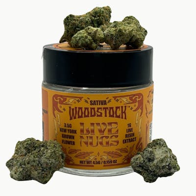 New school infusion technology meets old school flower vibes in Woodstock’s Live Nugs. 1 FULL GRAM of strain-specific powderized live resin hand-coated on 3.5 grams A+ buds on New York grown flower to create a one-of-a-kind smoking experience. Grind it, roll in and smoke it just like regular flower. Our proprietary process transforms high terpene live resin into fine trichome sized powder, preserving terpenes to ensure a full and even coating for an enhanced full-spectrum infusion experience. The Banana Cream Jealousy x Super Lemon Cream combo is a true Sativa combination with fruity & citrusy notes creating energizing and focusing effects to help get stuff done!