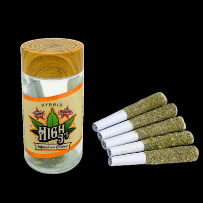 High 5’s brings you a citrus powerhouse with this sativa-infused 5-pack. Blending the bright pops of Orange Crush, Lemon MacMelon, and Tangie Jack, these pre-rolls are handcrafted with a potent 5x-infusion of concentrates. Expect an energetic, focused, and mood-elevating daytime high that tastes of sweet orange and pine, providing the perfect fuel for productivity or social excitement.