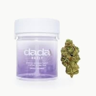 Garlic Cream is an indica-leaning hybrid strain that combines savory richness, creamy smoothness, and earthy undertones. The buds are dense and resin-packed, showing deep green hues with hints of purple beneath a frosty coating of sparkling white trichomes. Thin orange hairs twist across the flower, adding contrast and highlighting the sticky crystal-covered finish. The compact structure and resin density reflect skilled cultivation and curing, giving Garlic Cream strong bag appeal and bold flavor. Dada Daily 3.5g flower - our new premium living soil, mixed light flower line crafted for customers who want clean, flavorful, everyday smoke without compromising quality.