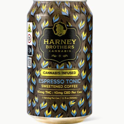 Experience a refreshing twist on your daily dose with Harney Brothers Cannabis Espresso Tonic—a sophisticated blend of cold brew espresso and sparkling tonic, lightly sweetened for a crisp, clean finish. Designed for those who want more than just a buzz, this ready-to-drink beverage delivers a perfect 1:1 ratio of THC to CBD (10mg total) for a balanced, functional high without the crash. With 10mg THC and 10mg CBD per serving, this cannabis-infused coffee tonic promotes a smooth sense of alertness, relaxation, and focus—making it an ideal companion for social afternoons, creative sessions, or an easygoing start to your day.