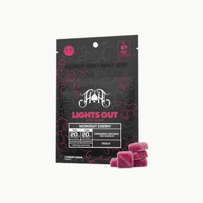 Delivering the ultimate knockout of full-body relaxation and mental calmness, Lights Out CBN Sleep gummies put you down gently and keep you asleep throughout the night. A smooth blend of cherry and dark fruit flavors, these gummies are infused with a 1:1 ratio of Heavy Hitters Ultra Extract and pure CBN. CBN, a rare cannabinoid created when THC is exposed to oxygen and light, is famous for its sedative properties. When paired with THC, CBN may provide a better night’s rest.