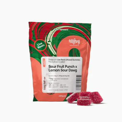 Bright, tangy, and uplifting, MFNY Sour Fruit Punch x Lemon Sour Dawg – Live Resin Gummies – 100mg (Sativa) deliver a flavorful and energizing edible experience. Each pack contains precisely dosed gummies crafted with strain-specific live resin, ensuring enhanced terpene flavor and full-spectrum effects. This sativa blend combines the bold, juicy sweetness of Sour Fruit Punch with the zesty citrus kick of Lemon Sour Dawg, resulting in a deliciously tart gummy that’s both refreshing and potent. Perfect for daytime use, these gummies provide an uplifting, euphoric high that enhances creativity, focus, and social energy