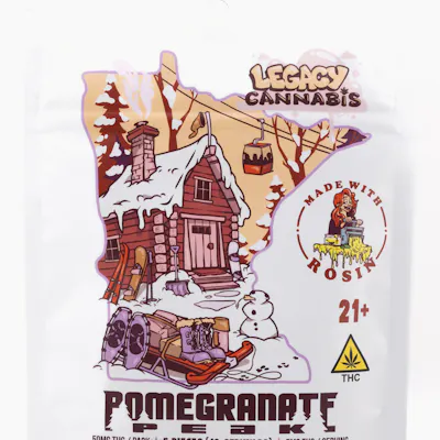 Reach your highest potential with Legacy Cannabis Pomegranate Peak gummies! Pomegranate Peak are hash rosin hemp-derived edibles designed for a potent and enjoyable cannabis experience. These gummies feature a vibrant, peak-perfect pomegranate flavor. Each 50mg pack contains 10 servings [5 - 10mg pieces - scored in 5mg THC halves] offering a consistent and controlled dosage. Legacy Cannabis edibles are made with *pure rosin* - a clean, solventless extract created using only ice water, heat, and pressure. No chemicals, no additives - just cannabis.