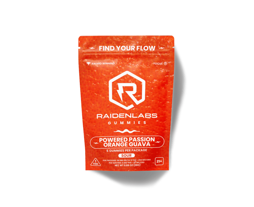 Raiden Labs Focus Gummies - 50mg THC + 250mg CBG - Powered Passion Orange Guava