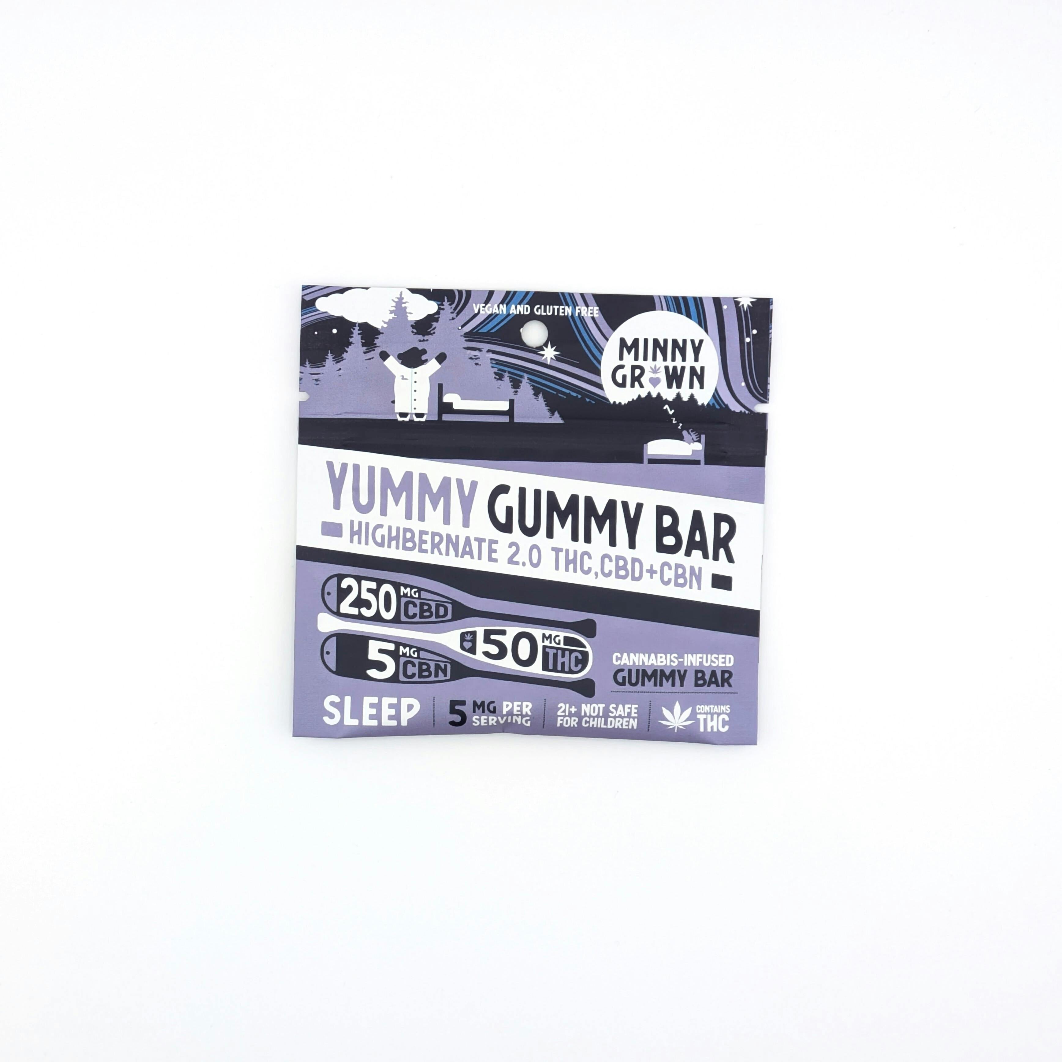 Minny Grown - 50mg THC + 250mg CBD + 5mg CBN Yummy Gummy Bar - Highbernate 2.0