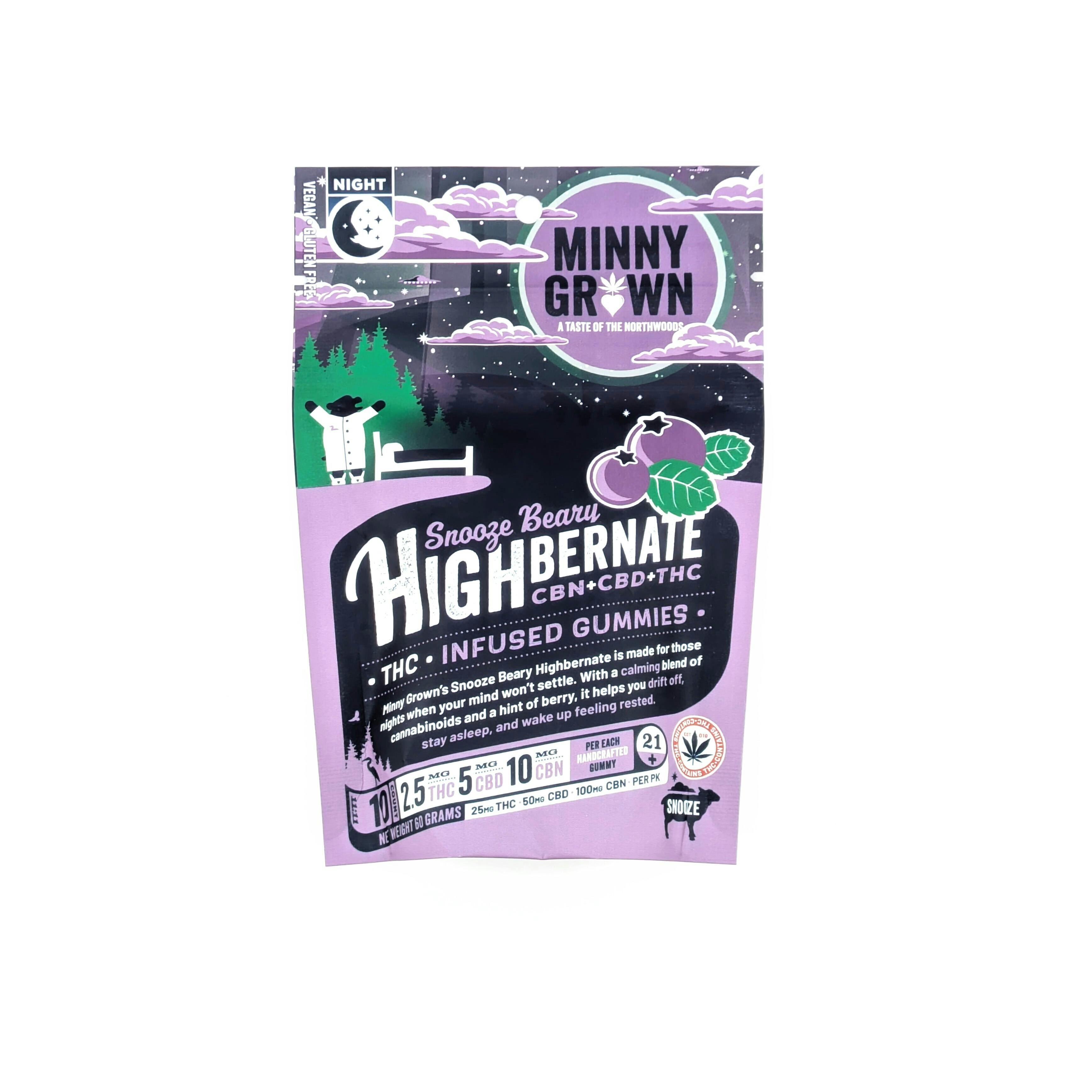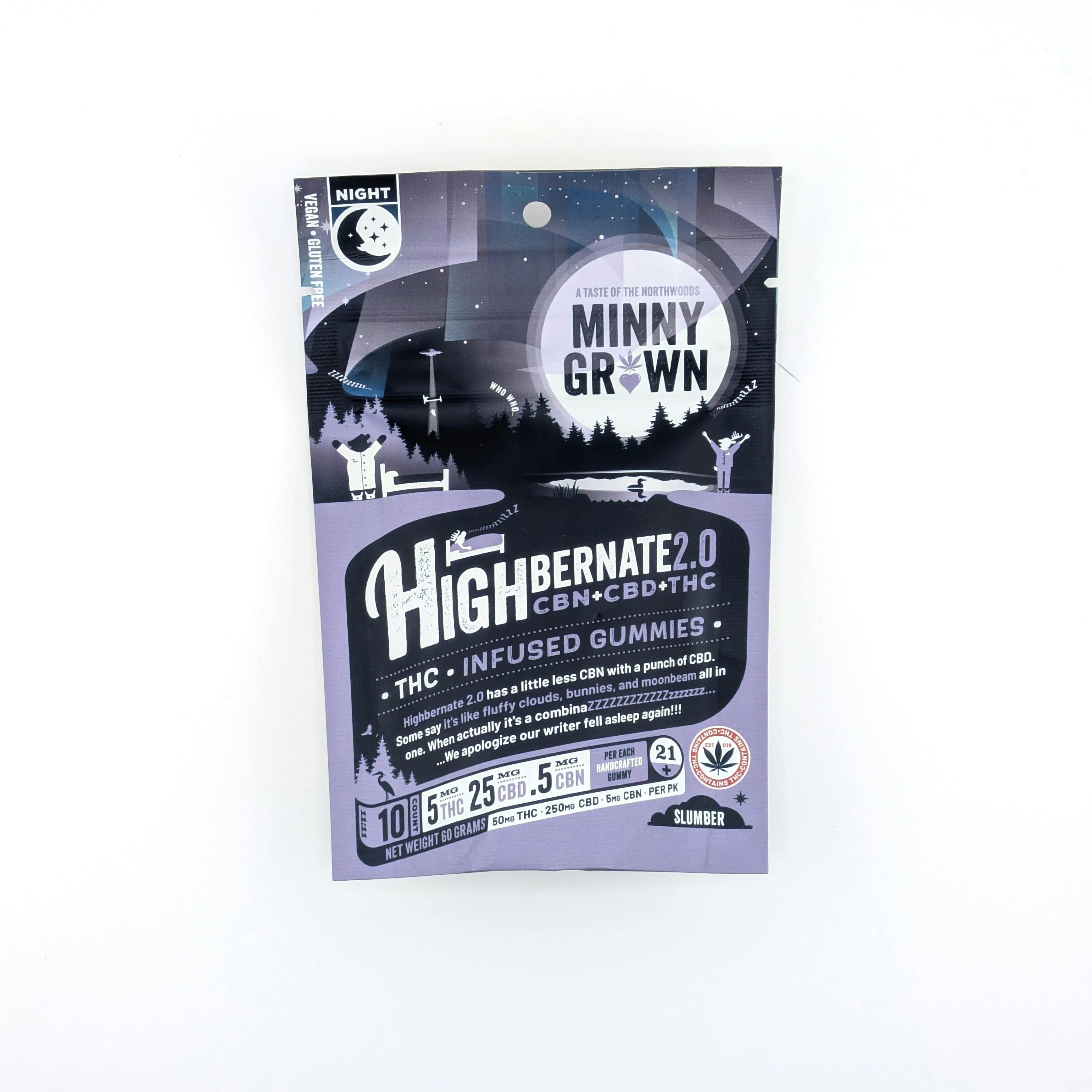 Minny Grown - 50mg THC + 250mg CBD + 5mg CBN Gummies - Highbernate 2.0