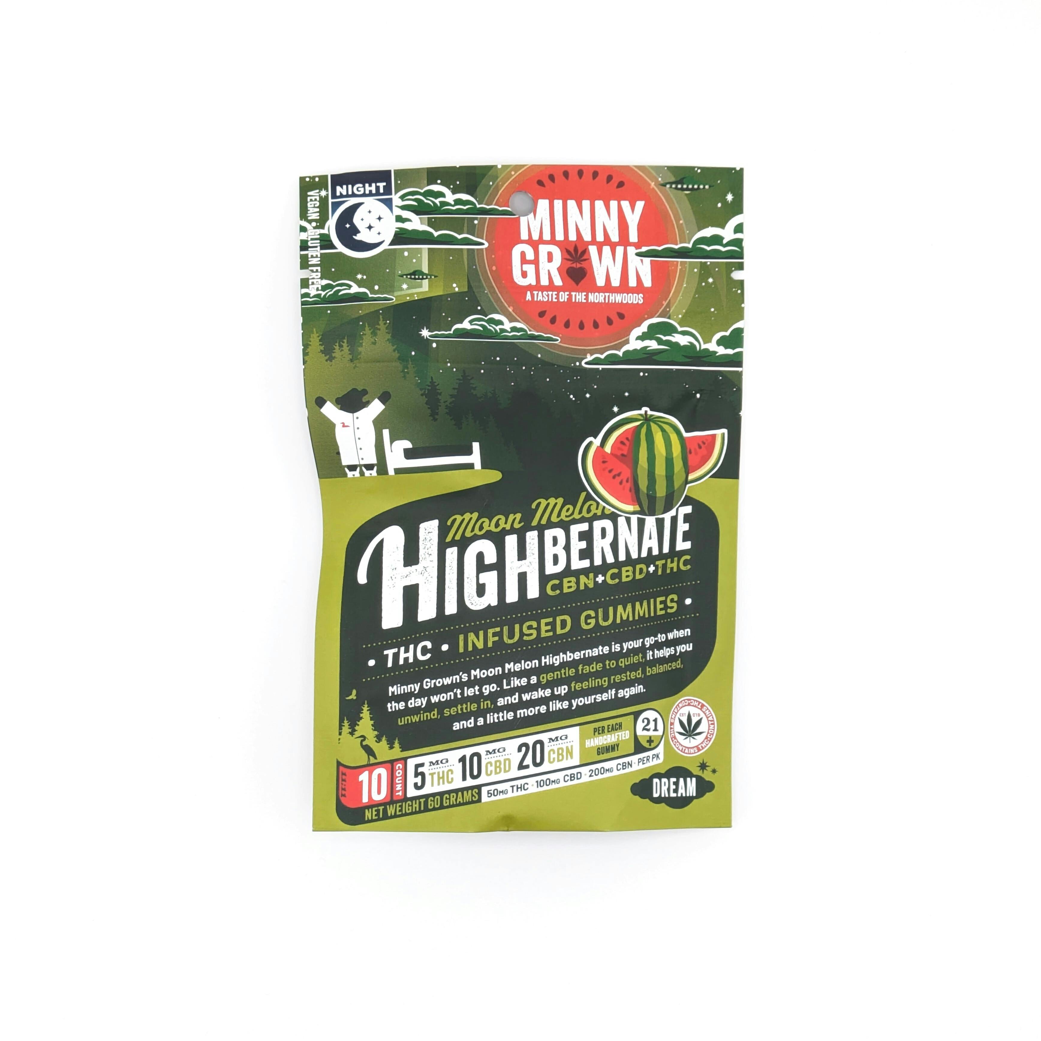Minny Grown - 50mg THC + 100mg CBD + 200mg CBN Highbernate Gummies - Moon Melon