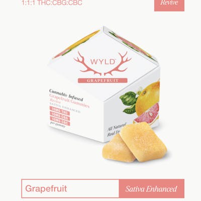 Wyld's 1:1:1 THC:CBG:CBC + Sativa Enhanced Gummies offer a blissful + boosting nudge in the right direction. These gummies are a 1:1:1 ratio product featuring a balanced dose of three cannabinoids for an uplifting + energetic experience. Made sustainably using real fruit, botanical terpenes, and natural flavors.