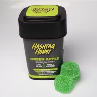 Hashtag Honey | Gummy | 100mg | 10pc | Green Apple | Vegan | Gluten Free | Live Resin | Nano Infused