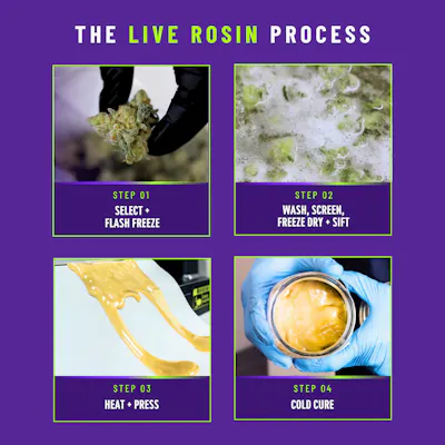 Flora hits like a garden in full bloom — black pepper and citrus up front, soft florals underneath, rich earth all the way through. Sundae Driver meets Sunset Sherbert: stress-melting without killing the spark. Good for moving, creating, or whatever needs doing when you actually want to be present for it. Soft, scoopable, and ready to rip. This is live rosin the way concentrates were meant to be — cold-processed, solventless, and hitting exactly like the plant intended.