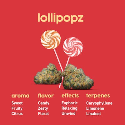Lollipopz is like unwrapping your favorite treat after a long day—sweet, fruity, and instantly comforting. A cross of Red Velvet Runtz and Lemon Cherry Gelato, this indica greets you with candy-shop aromatics and bright bursts of berry and citrus before settling into a warm, euphoric calm. It’s the kind of gentle, happy high that makes the world feel softer and the evening stretch a little longer.