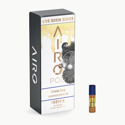 High-potency, all-natural cannabis, and geared for those who love an authentic flower-forward experience. Crafted with locally sourced premium cannabis, each Live Rosin Indica strain contains the original cannabinoid and terpene profile from live, freshly frozen plants. It’s heat extracted for a clean-yet-distinctive profile. AiroPod Cartridges are only compatible with the AiroPro and AiroSport Vaporizer.