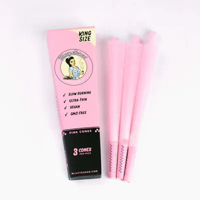 Signature pink King Size pre-rolled cones in a 3-count pack, ready to fill for a dependable smooth, slow burn.