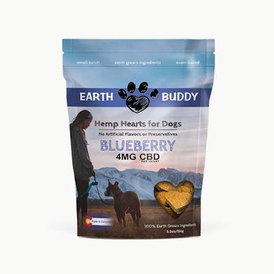 If you want the best CBD Chews for Dogs, you've come to the right place! Our tried & true recipe is a staple in our natural pet supplements for over 7 years! Made from scratch in our own kitchen with whole food ingredients and oven-baked at low temperatures. Till this day we hand cut them with love and care to make the best calming chews for dogs in the world! Each Blueberry Hemp Heart has 4mg of Supercritical Co2, Whole Plant Hemp Extract containing a full-spectrum of CBD for dogs with other cannabinoids & terpenes. Blueberries are rich in antioxidants. Turmeric with Black Pepper to promote optimal inflammatory response and have shown to balance mood. Organic Apple Cider Vinegar supports ph balance in the gut and promotes healthy immune response. Organic Coconut Oil provides healthy fat for skin, coat and brain function. It has also shown to help with digestion. About 30 Blueberry CBD Chews for dogs per bag