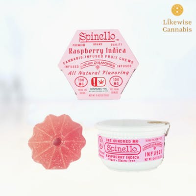 Enjoy Spinello! Served in a stay fresh case, our delicious Raspberry Indica fruit chews are infused with premium Gold Drop Liquid Diamonds™ live-resin in an easy dose, break-away gummy. Vegan, gluten free, and made with all natural flavors, each fruit chew contains 10mg THC per serving, with 100mg THC total per package. Description sourced from Smokespinello.com *Please add to cart all products for any deals that you would like or add order notes for specifics. If nothing added, we will default to filling the order as placed. All deals, discounts & incentives will be taken care of on our end automatically, just add what you want to your cart and we'll always get you the best deal available. Online orders held for 24H maximum.*