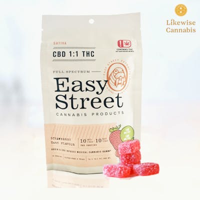 The ever popular strawberry tart was the first flavor to debut at Easy Street! Now we present strawberry CBD 1:1 THC. Each delicious gummy contains 10mg of THC and 10mg CBD. Our edibles are full spectrum, producing an entourage effect that provides an enriched experience for the user. The full array of cannabinoids present in these tasty jewels bring the unique therapeutic qualities to life, surely to help ease what ails you. We extract in-house with a rosin press using only high quality buds and never introduce solvents. Full spectrum, vegan, and gluten free. We are dedicated to consistency, quality, and dosage accuracy. 100% Oklahoma owned and operated. *Please add to cart all products for any deals that you would like or add order notes for specifics. If nothing added, we will default to filling the order as placed. All deals, discounts & incentives will be taken care of on our end automatically, just add what you want to your cart and we'll always get you the best deal available.