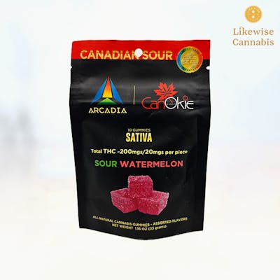10-PACK 200MG CANADIAN SOUR WATERMELON ROSIN GUMMIES - ARCADIA
