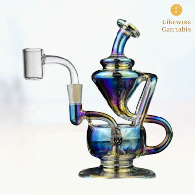 The Claude Mini Rig pays homage to our original Merlin Dab Rig by reimagining water direction and filtration. Named after an original inventor of the ancient Roman aqueduct system, the Claude Mini Rig alters how water is utilized, enriching your dabbing experience. Building on our classic recycler rig design, we've added aesthetic aqueducts that guide water into two clear turbines. These turbines cool the vapor with each inhale, delivering a perfect flavor profile with every pull. The Claude Mini Rig, a unique double uptake recycler rig, has protruding arms and an asymmetrical look that adds a touch of elegance to your collection and boosts the rig's performance. Despite its intricate design, the Claude Mini Rig is a sturdy piece. Crafted from high-quality glass, it can withstand high temperatures and resist accidental falls. It's also user-friendly, making it suitable for beginners and a favorite among daily users due to its ease of cleaning. The Claude Mini Rig features a built-in oil catcher for reclaiming any remaining product, ensuring no concentrate is wasted. A compact chamber under the quartz banger ensures that every last drop hits hard. The two-turbine design changes water direction and circulates it through multiple chambers, providing a visually appealing experience and cooling the vapor to a comfortable inhalation temperature. With complex curves providing grip points and a wide, durable base, the Claude Mini Rig is easy to handle and nearly spill-proof. Like its predecessor, the Merlin Dab Rig, it incorporates a splash-resistant design, keeping your lips clear of vape-infused water. The unique design ensures water stays within the rig, allowing the smoke to swirl upwards for a smooth, flavorful inhale. With the Claude Mini Rig, you'll experience a terp-filled vapor's whirlwind journey. This innovative design offers a smooth and flavorful experience, elevating each dabbing session. The Claude Mini Rig is a testament to our commitment to enhancing your dabbing journey. *Please add to cart all products for any deals that you would like or add order notes for specifics. If nothing added, we will default to filling the order as placed. All deals, discounts & incentives will be taken care of on our end automatically, just add what you want to your cart and we'll always get you the best deal available. Online orders held for 24H maximum.*