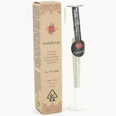 Nasha’s hash-infused Altitude Preroll is made from a mix of trimmed whole flower cannabis and in-house produced cold water hash, crafted to inspire creativity, euphoria, and productivity.