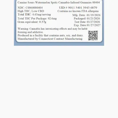 Camino Sours Watermelon Spritz Cannabis-Infused Gummies 00404