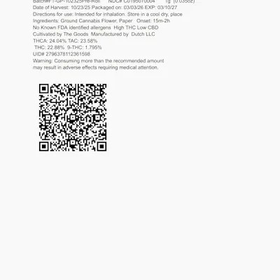 Cookies G. Payton20 1g Whole Flower Pre-Roll (C0195070004)