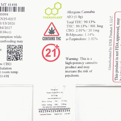 Dream Clouds MT 41498- 90.13% THC NDC: C0040001498 Sativa AIO (1.0g) Nimbus Snacks x Blue Dream FLW EQ: 3.61g