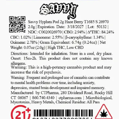 Savvy Hyphen Pod 2g Haze Berry T1685 S 26970