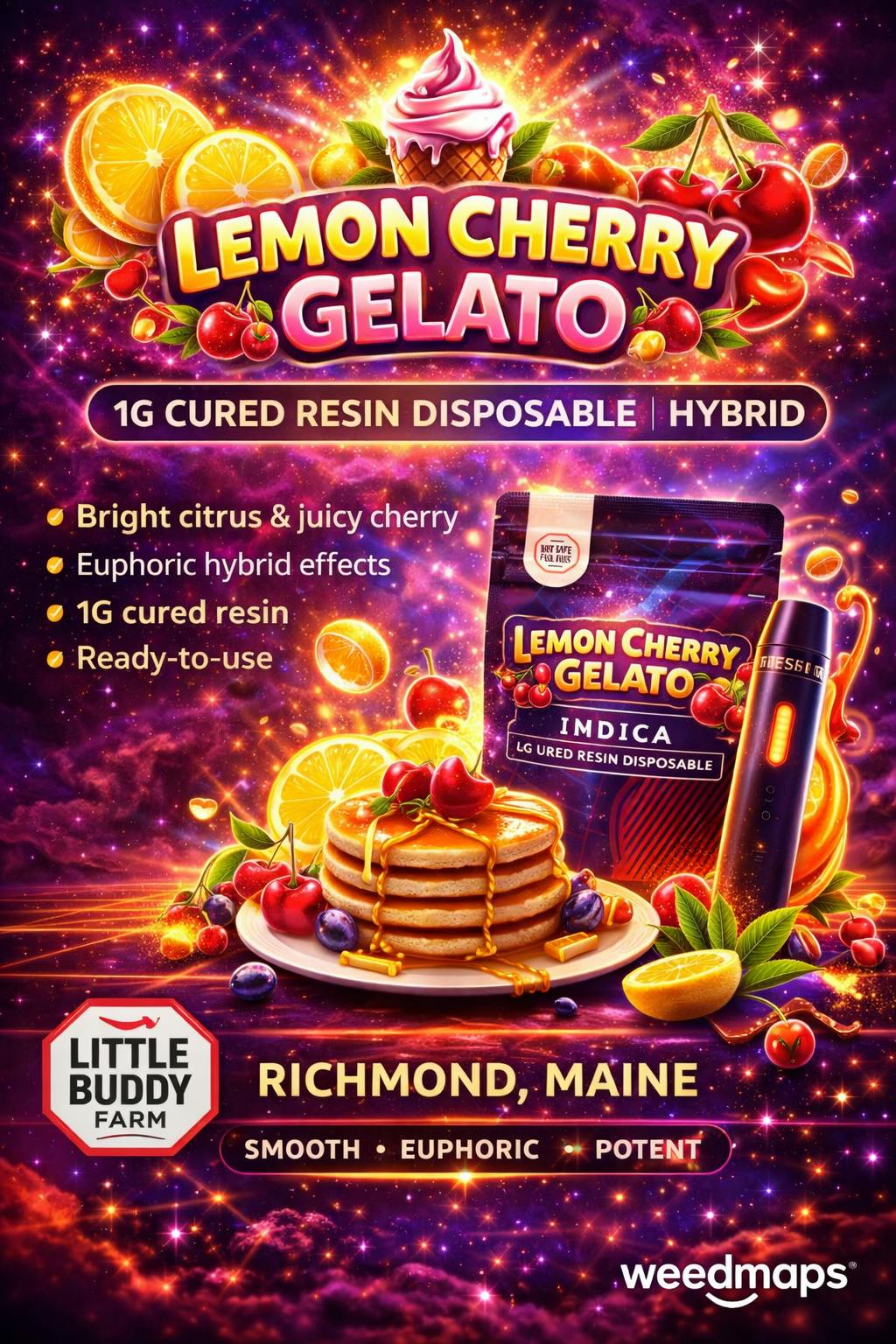 In November 2023, Little Buddy Farm officially opened its retail location at 164 Main Street in Richmond, Maine. We’re now open Monday through Saturday, 7am–8pm, offering a thoughtfully expanded menu that includes Flower, Pre-Rolls, Infused Pre-Rolls, Dabs, Cartridges, Disposables, edibles, and topicals. At any given time, you’ll typically find 25 or more strains available, along with a rotating selection of carefully chosen products. Our full menu is available on Weedmaps, and curbside pickup is always an option for those on the go.