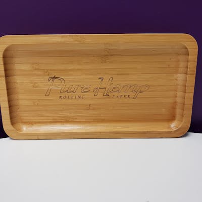 Natural Bamboo tray featuring and inner bevel and Pure Hemp Branded.