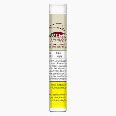 Not your first rodeo? Giddy up and go with Wild West's line up of 95+ vapes. Strawberry Stampede has a bright berry flavour, bucking up as one of the most potent products available. Inspired by Canada's Wild West with real value and quality cannabis ingredients. Strawberry Stampede is a custom blend of liquid diamonds with a splash of strawberry botanicals, featuring a custom 510-thread vape cart with a signature cowboy cartridge dust cap. [INGREDIENTS: Cannabis distillate, Flavouring agents]