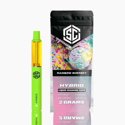 Rainbow Sherbet (Hybrid): The SC's Rainbow Sherbet Liquid Diamond Easy-Draw 2G Vape delivers a fun, colorful experience. Enjoy a balanced, euphoric high that settles you into a good mood, matched by a vibrant, sweet, and fruity sherbet flavor. Just vape and feel happy.