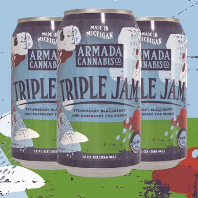 Product: Triple Jam Punch Dosing: 50 mg Flavors: Strawberry, Black berry & Raspberry Size: 12 oz cans Triple Jam by Armada Cannabis Meet the newest flagship in Armada’s beverage fleet: Triple Jam, a bold, fruit-forward cannabis drink inspired by the beloved flavor profile of our friends at the farm. We’ve reimagined it for the modern consumer—sweet, bright, berry-packed, and powered by 50mg of fast-acting THC instead of alcohol. Every sip layers strawberry, blackberry, and raspberry for a juicy, jammy experience that feels nostalgic yet elevated. Crafted with nano-emulsified THC for a smooth onset and balanced ride, Triple Jam delivers a flavorful, full-strength alternative to drinking without sacrificing taste or social energy. Perfect for: seasoned consumers, sharing with friends, or anyone looking for a potent, delicious twist on a Michigan favorite.