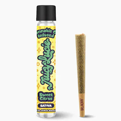 Each Juicy Lucie 1.2g PreRoll comes infused with broad spectrum cannabis oil and a complex blend of terpenes to provide fresh-squeezed flavors and unprecedented potency, allowing you to fully let loose with the Juice! Brighten your day with Sweet Citrus, a zesty burst of sunshine wrapped in smooth, sweet citrus flavor. Once sparked, an uplifting wave of energy and focus kicks in, helping you reset your mindset and take on whatever’s next. With Sweet Citrus, it’s all about staying sharp, feeling refreshed, and riding that feel-good momentum. --- Feelings: Energized, Focus Aroma/Flavor: Citrus, Sweet --- Species: Sativa Top Terpenes: d-Limonene, gamma-Terpinene, Terpinolene