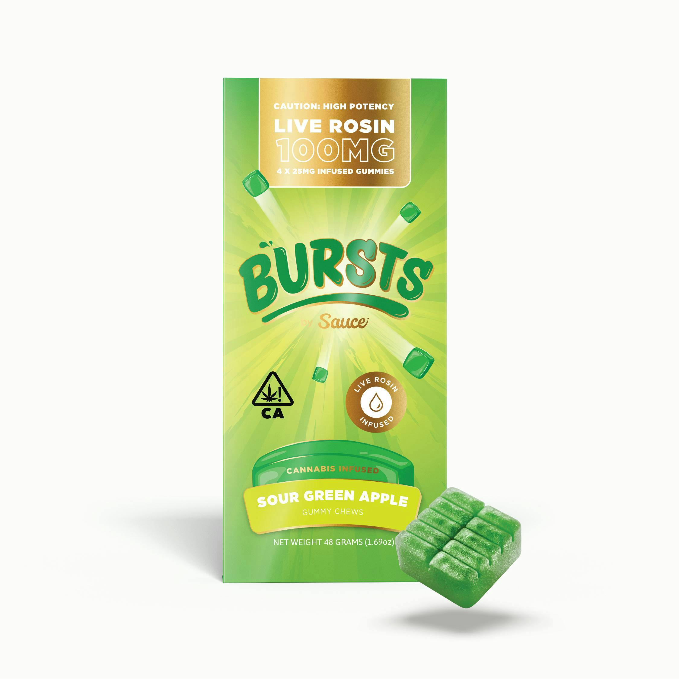 Our gummies are the best in the game! We have perfected the potency, flavor, ingredients, process and activation time. Bursts by Sauce are powered by our 2X Nano Live Resin, which is created using a proprietary process of both encapsulation and sonic energy to break down the molecule size. This makes the gummy hit faster, harder and smoother than any other gummy. Our gummies are also organic, and vegan and gluten free!