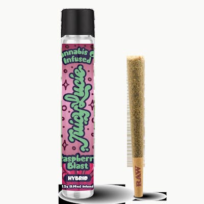 "Each Juicy Lucie 1.2g PreRoll comes infused with broad spectrum cannabis oil and a complex blend of terpenes to provide fresh-squeezed flavors and unprecedented potency, allowing you to fully let loose with the Juice! Tick, tick, boom! Raspberry Blast by Juicy Lucie brings an explosion of tart, sweet raspberry flavor that is sure to wake the senses and refresh the mind. Used best as a mid-day pick me up, Raspberry Blast is the perfect multitool for any occasion. Whether it be work, play, or something in between, Raspberry Blast has more than enough flavor to see you through to the other side." -Juicy Lucie