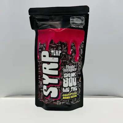 Mindful Indulgence TERP SYRP is a delicious and all-natural Nano Rosin fruit syrup that is hand-crafted from real fruit and high quality ingredients (NO corn syrup). The live hash rosin for this fresh batch of 800 MG SYRP was sourced from Skunks' small-batch operation. Remember - SYRP comes with easy dosing instructions on the label and can be mixed into your favorite beverage or taken by itself “straight up”. Check out our collab partner on Instagram: @Skunk_OKC