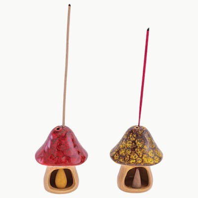 The Fujima Small Glazed Mushroom Cone Ceramic Incense Burner is a delightful and unique home decor item. Each burner measures 2.75 inches tall and features a mushroom-shaped design with a glazed finish, available in assorted colors. Perfect for adding a touch of whimsy to any space.