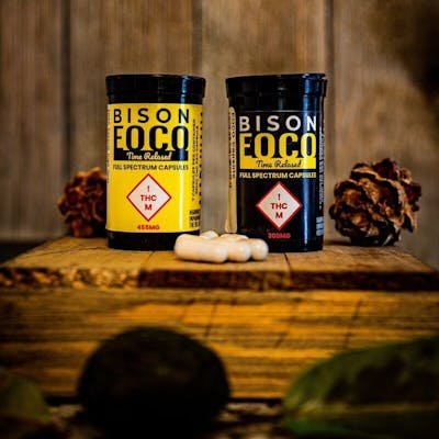 Each capsule contains 26.25mg THC Bison EOCO (Essence of Cannabis Oil) is a cutting-edge full-spectrum time released capsule designed with four activating oils, giving you three distinct medication waves. Wave 1 - The "Head High" - Coconut Oil - 0 to 2.5 Hours In - A creative euphoric, social high activated via first-pass metabolism. Great for working out and busy tasks. Wave 2 - The "Body Buzz" - Avocado Oil - 2.5 to 5 Hours In - The buzz evolves; you notice a calming body high kicking in as THC-infused Avocado Oil activates in your portail vein. Wave 3 - The "Med Effect" - Extra Virgin Olive Oil - 5 to 7 Hours In - The THC-infused Olive Oil activates in your lymphatic nodes, giving you a healing, balanced high. Wave 4 - The "Skeletal Wave" - Grapeseed Oil - 7 to 9 to Hours In - For its final act, Grapeseed Oil activates partly in your body's bone marrow, allowing for deep penetration for effective full-body relief. 7 capsules per container.