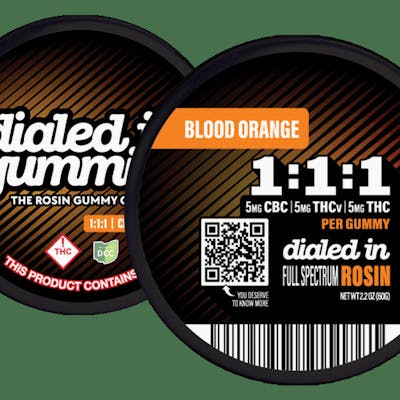 Dialed In - Blood Orange 1:1:1 THC/THCV/CBC - Live Rosin - 100mg - 10pk - Gummies
